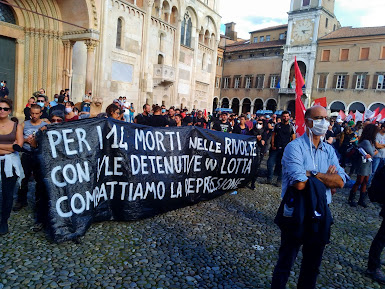 Dal palco e con uno striscione in piazza è stata portata una forte denuncia della situazione nelle carceri, dove le lotte scoppiate a seguito dell’emergenza Covid e della conseguente sospensione dei colloqui con i familiari e di ogni attività interna, hanno trovato una risposta feroce e assassina: 14 morti e centinaia di feriti in pestaggi che sono continuati anche nei giorni a seguire, come dimostrano le tante denunce pubbliche fatte da detenuti e familiari.